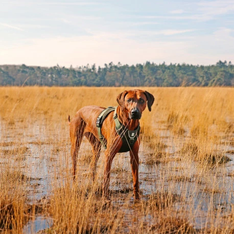 Sortez avec le harnais EXPLOR Ultimate Fit No-Pull, un harnais pour chiens bien pensé, ergonomique et idéal pour une promenade quotidienne en ville ou une grande aventure en plein air. Votre chien jouit d’une liberté de mouvement optimale car la pression causée par la traction est répartie uniformément autour de la poitrine. Les organes vitaux du cou restent ainsi protégés. Le harnais présente deux anneaux de fixation en acier inoxydable : un sur le dos, adapté aux chiens calmes ou plus âgés que vous pouvez bien garder sous contrôle, et un anneau en D renforcé sur la poitrine pour guider les chiens tirant sur la laisse. Le harnais EXPLOR Ultimate Fit No-Pull est réglable autour du cou et de la poitrine, ce qui le rend parfait pour presque tous les chiens en combinaison avec les matériaux durables. Les boucles sont situées autour de la taille, de sorte que le chien n’a pas à lever sa ou ses pattes pour mettre le harnais. Pour protéger le pelage et la peau du chien des abrasions, la plupart des sangles et des boucles sont recouvertes de matériaux doux et respirants. De plus, les tissus légers mais qualitatifs qui ont été utilisés à la fois pour l’intérieur et l’extérieur sèchent rapidement : très pratique si votre chien aime nager. Pour éviter que votre chien ne reste coincé sur les branches lorsqu’il se promène librement, le harnais n’a pas de boucles ou de parties saillantes. EXPLOR Ultimate Fit prend également en compte la sécurité de votre chien dans la circulation. Les bandes de couture réfléchissantes sont placées aux bons endroits pour une visibilité optimale dans la circulation. Une poche intérieure spacieuse dans la partie poitrine du harnais a également été fournie pour une étiquette d’identification. L’étiquette est facilement accessible et reste intacte. Sortez et EXPLOREZ !