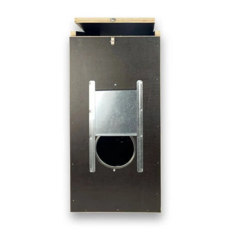 L’échelle à l’intérieur de la cabine facilite l’entrée et la sortie de l’oiseau. Comprend un renfort métallique sur les deux ouvertures circulaires. Porte de visite type guillotine à droite en tôle galvanisée.