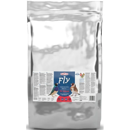 Pâtée sèche à base d’œufs avec des insectes, des crevettes et des graines sauvages pour l’élevage des oiseaux en cage et en volière.